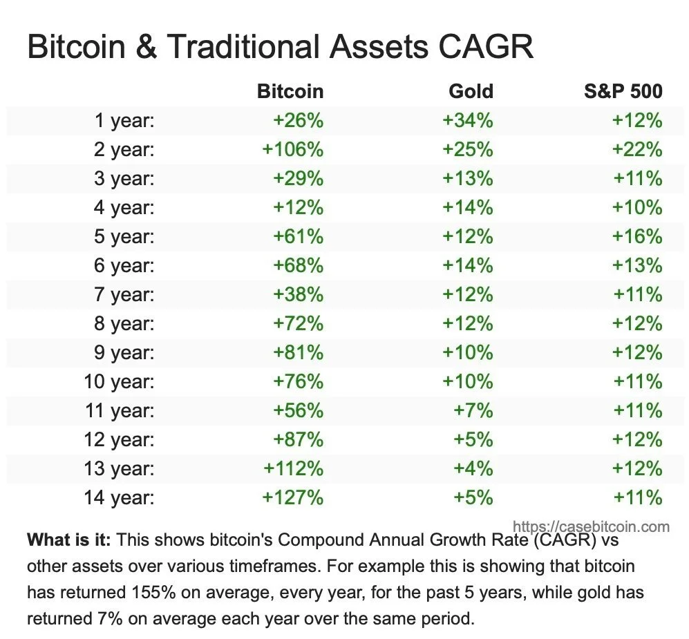 Causing Bitcoin to outperform every major asset class with an average 155% CAGR